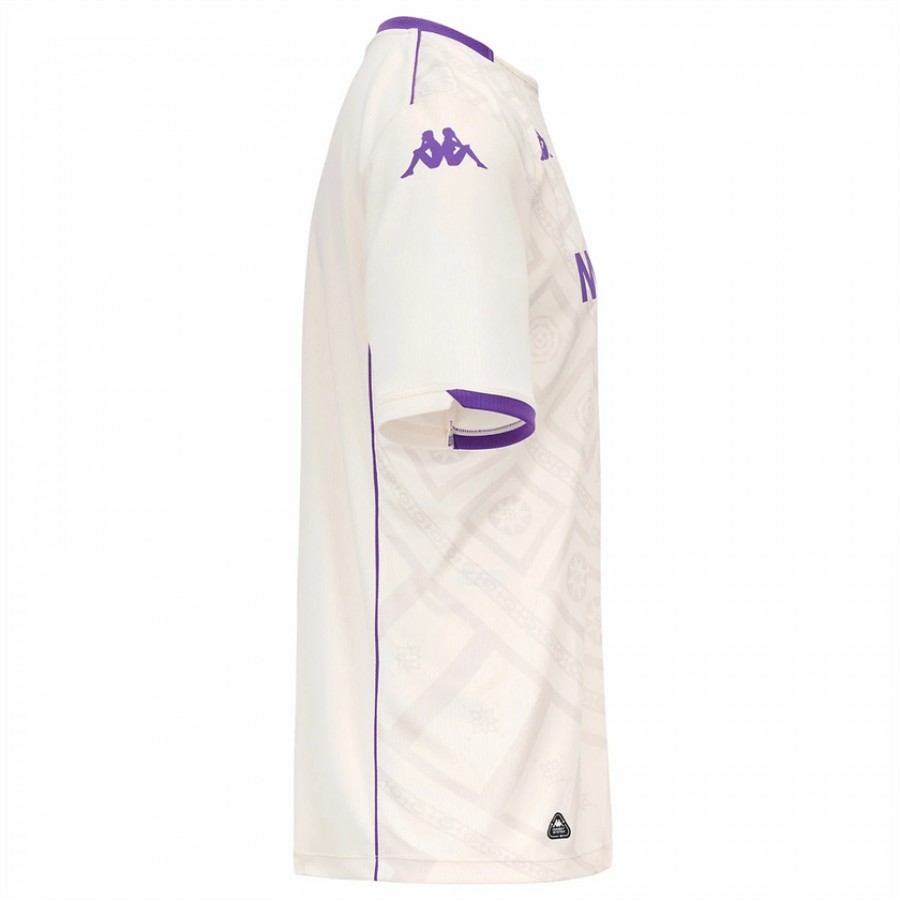 Short sleeve, round collar and inserts on bottom sleeves and on back collar. Kappa logo, lettering and sponsor applied with heat transfer, ACF FIORENTINA Patch in Gabardine. Composition: 100% Recycled polyester.