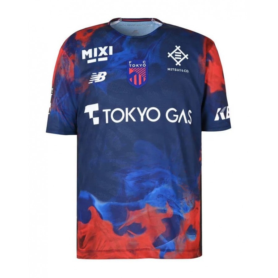 The FC Tokyo 2026 home jersey by New Balance, with Tokyo Gas as the sponsor, was released on December 6, 2025. Its navy blue base is enhanced by a dynamic red and light blue graphic pattern, presenting a smoky aesthetic.