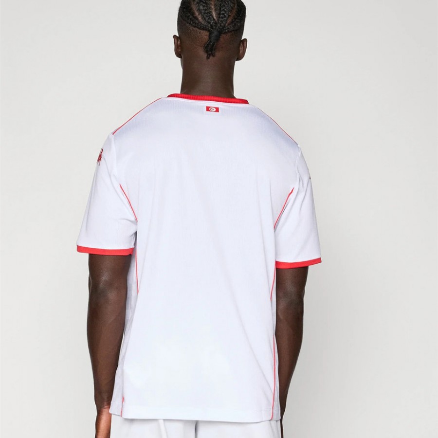 Upgrade your collection with the Tunisia Away Jersey 2026, designed for fans who want premium comfort and authentic national-team style. This away kit features a clean white base with bold red accents and a geometric pattern inspired by Tunisian heritage — making it one of the standout jerseys of the season.