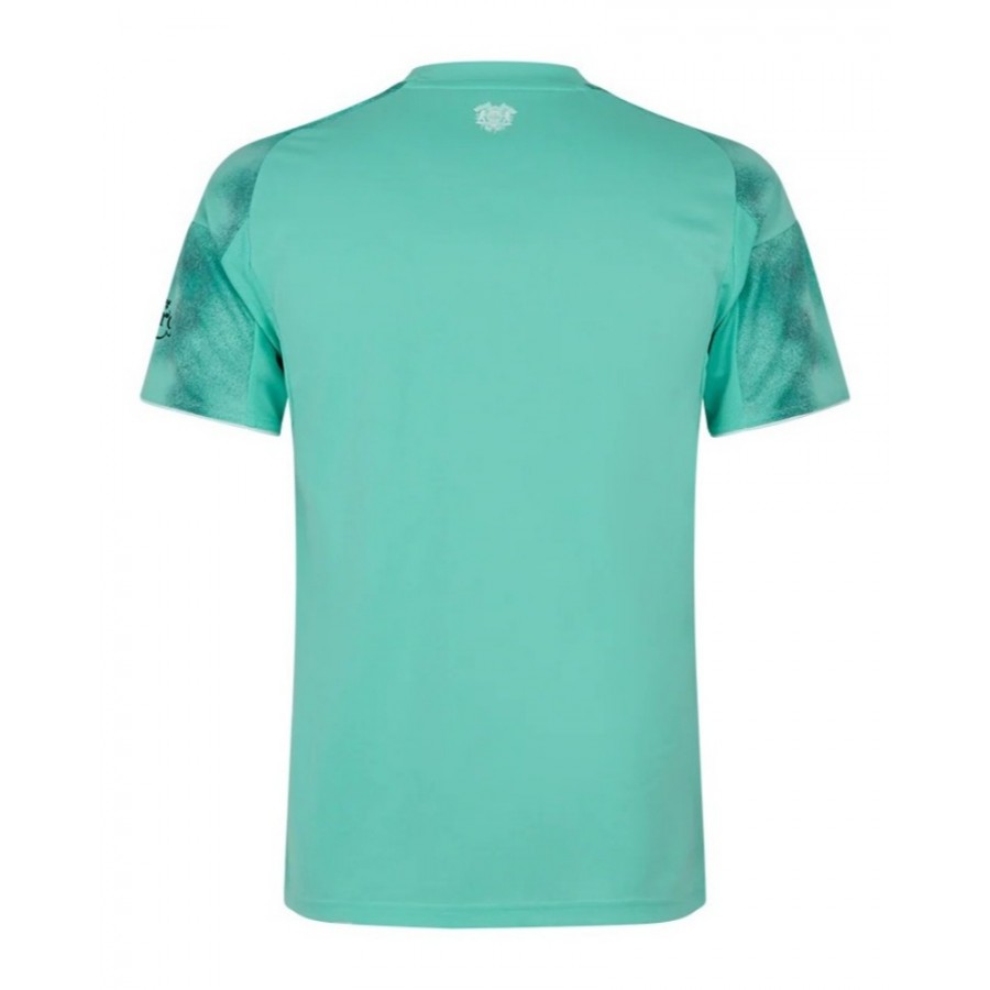 The Adidas Copenhagen 2025-26 third jersey comes in a light mint green base with subtle textured shading across the chest and shoulders. Dark teal logos, including the club crest, Adidas badge, and sponsor Unibet, provide contrast. White Adidas stripes on the shoulders complete the look of the Copenhagen 25-26 third kit.