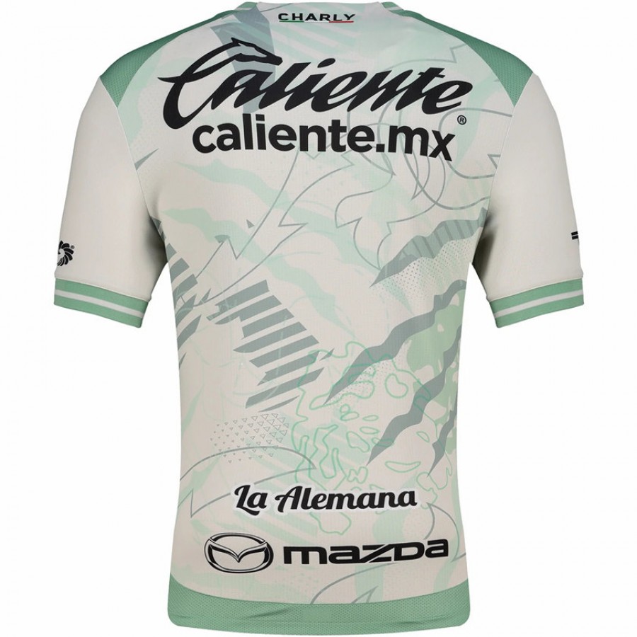 Take your passion for the Esmeraldas everywhere with the León Away Jersey for Men 25-26, a unique piece that pays homage to the club's fierce spirit and connection to the lion as a symbol of power. This innovative design in light green tones incorporates paws, claws and elements inspired by the lion's natural habitat, fusing identity, strength and style in one garment. It features a V-neck and classic ribbed sleeves in green with a gray stripe, details that add a sporty and elegant finish. The team's crest stands out for its exclusive design, featuring an extraction of the lion from the coat of arms, made of woven silicone, which provides texture, durability and a distinctive touch that a true fan will appreciate. It is made of 100% soft touch polyester, ideal for prolonged use thanks to its resistance and comfort provided by its regular fit. In addition, it includes mesh panels on the shoulders and sides, along with textured fabric, which together improve breathability, keeping you cool in every workout or intense day. It incorporates DRY FACTOR technology, which will keep you dry for longer, ensuring extra freshness thanks to its specialized moisture transfer fabrics. UV Block technology offers protection against ultraviolet rays, ideal for training or outdoor matches, while Nano Guard fights bacteria that cause unexpected odors, ensuring freshness for longer. The León Away Jersey for Men 25-26 is the perfect choice for those who live soccer with their heart.